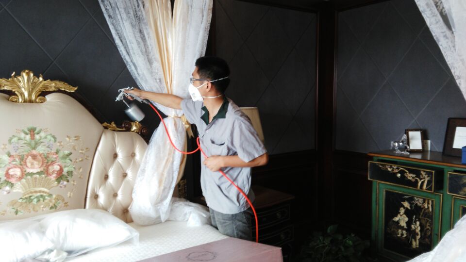 治理方案及施工:針對(duì)其房屋結(jié)構(gòu)特點(diǎn)、污染情況,我公司技術(shù)及施工人員采用了非常精密的施工方案,針對(duì)其墻面、床墊、沙發(fā)、窗簾、布藝家具使用我公司研發(fā)的利純光觸媒進(jìn)行甲醛清除,這些地方光照量較充足,便于光觸媒對(duì)甲醛的分解,且光觸媒性溫和,不會(huì)對(duì)這些產(chǎn)品造成危害,對(duì)于刷漆的家具、書桌、衣柜、木門等采用甲醛清除劑進(jìn)行處理,甲醛清除劑是我公司針對(duì)家具中甲醛特別研發(fā)的產(chǎn)品,對(duì)家具中甲醛、苯、等產(chǎn)品效果良好,甲醛對(duì)兒童、老人的危害最為嚴(yán)重,老人因?yàn)榈挚沽Σ睿鴥和瘏s是因?yàn)樯眢w防御系統(tǒng)不夠健全,且呼吸頻率比成人高,所以我們針對(duì)兒童房做了重點(diǎn)處理,對(duì)業(yè)主家的兒童房做重點(diǎn)處理,針對(duì)不同污染物,做分別處理。為業(yè)主清理甲醛,還業(yè)主一個(gè)安全,健康的生活環(huán)境是我們?nèi)w工作的責(zé)任,下面為施工現(xiàn)場照片: