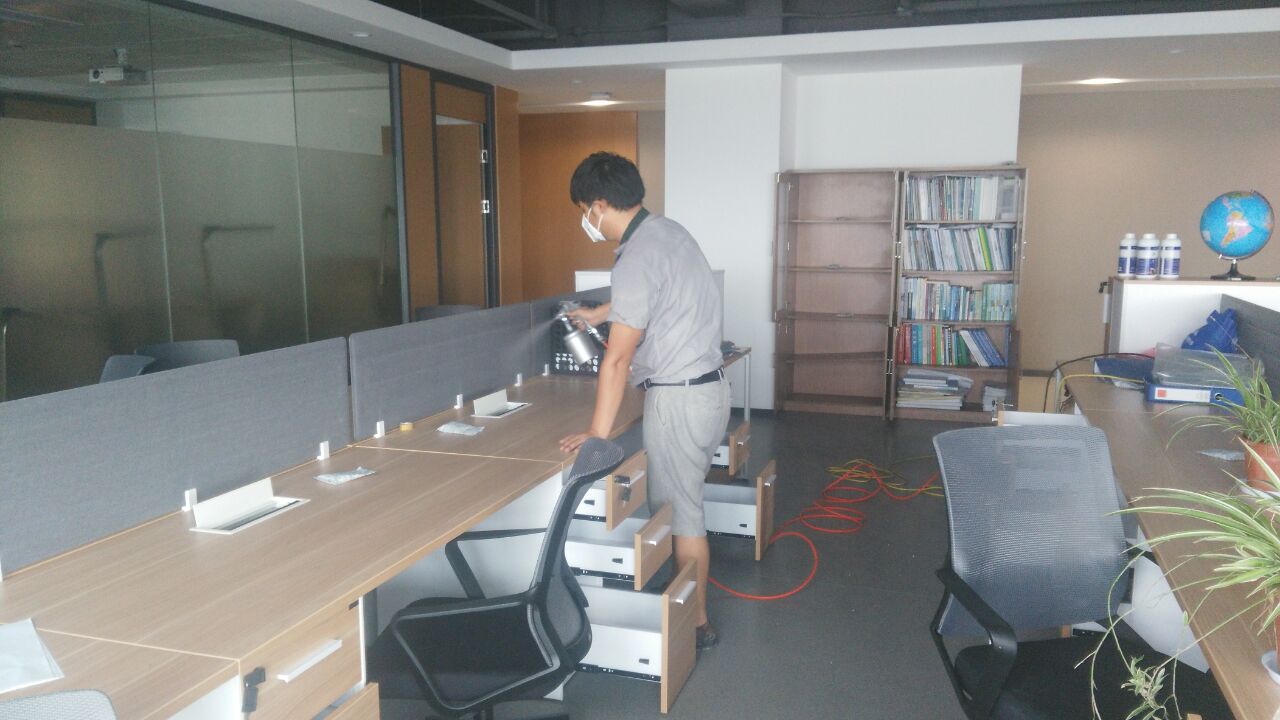 工程介紹:該工程為杭州能源環(huán)境工程公司新建辦公區(qū)域,主要區(qū)域有辦公區(qū)、生活區(qū)、生產(chǎn)區(qū),建筑主要以私生活、辦公為主要功能,建筑設(shè)計布局合理,功能設(shè)施齊全,建筑空間利用率用率較大,裝修施工時間較短,且所有家具、建材都是新產(chǎn)品,因裝修面積較大,建筑材料的使用量較大,且總類較多,因為空間使用量較大,所以裝飾物較多,有大量的辦公家具,且質(zhì)量因工程量大,不容易做到全部安全合格,辦公家具放置擺放比較擁擠,且家具多為合成板材,墻面粘貼有色墻紙、墻布,粘貼時不可避免的膠水使用量就變得很大,也有部分皮革材料的家具,布藝飾品,很容易導(dǎo)致甲醛超標(biāo)嚴(yán)重,辦公室工程因為預(yù)算和功能性,是比較容易甲醛超標(biāo)的建筑群體,室內(nèi)空氣甲醛超標(biāo)量一般也比較嚴(yán)重,而甲醛又是一種無色有較強(qiáng)刺激性氣味的氣體,甲醛在工業(yè)生產(chǎn)過程中廣泛運(yùn)用,也是人們在新房裝修,購買新家具、新車時最為忌諱的一種物質(zhì),室內(nèi)或車內(nèi)甲醛濃度的高低,直接影響著人們的生命健康安全,如果不注意,一旦吸入,會對人身體造成很到的危害。管理人員為了給工作人員提供一個良好的環(huán)境,避免污濁空氣對人們的侵害。請我公司對污染物進(jìn)行全方位的處理。